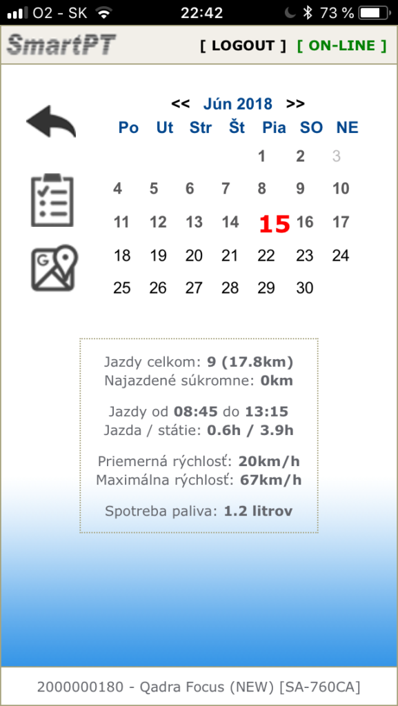 Systém ponúka online sledovanie vozidiel na niekoľkých druhoch mapových podkladov hlavne licencované Google Maps a voľné Openstreet Maps – na PC, v mobilných telefónoch a tabletoch Apple aj Android. Samozrejmosťou je kvalitne spracovaná kniha jázd vo formátoch XLS, alebo PDF. Vysoká presnosť počítadla kilometrov je známou výhodou našich zariadení. Vo verziách s napojením na CANBUS, prebieha synchronizácia počítadla kilometrov s palubným počítačom v reálnom čase. Spoľahlivý a preverený systém s rýchlou návratnosťou!